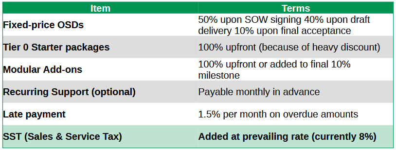 **Payment Terms (Micro/Startup Friendly)**